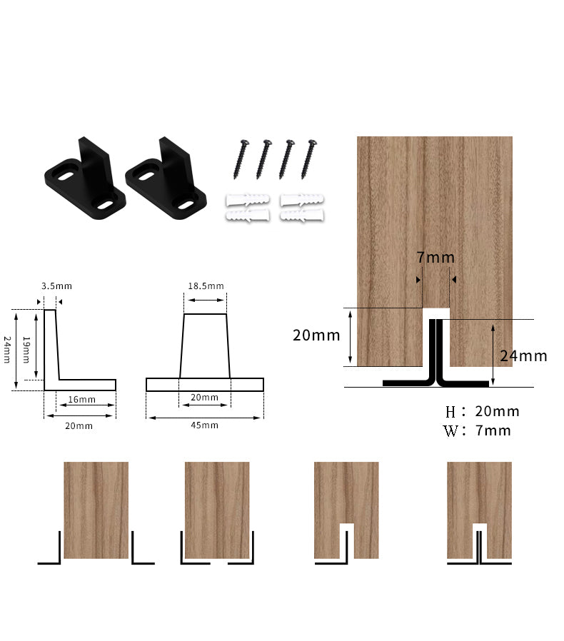 - LOW IMPACT SUBTLE PROFILE –– Strong plastic pocket door guide to be used on grooved and non-grooved sliding doors Dimensions of each Guide: 23.3mm (height) x 45.1mm (long) x 20mm (wide). Please refer to images for further size details.